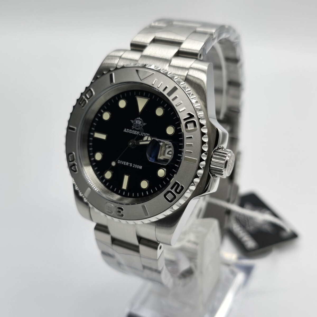 - 新品 ADDIESDIVE ダイバーズウォッチ シルバー 黒文字盤 メンズ腕時計 MIYOTA2115 クォーツ式
