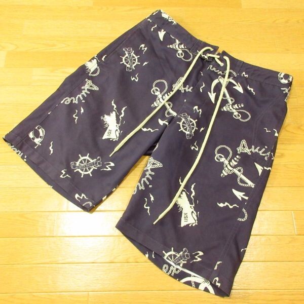 > ◎美品!AVIREX アヴィレックス US NAVY ボードショーツ ハーフパンツ サーフ 水陸両用 総柄 マリン メンズ ネイビー Mサイズ◆PA3529
