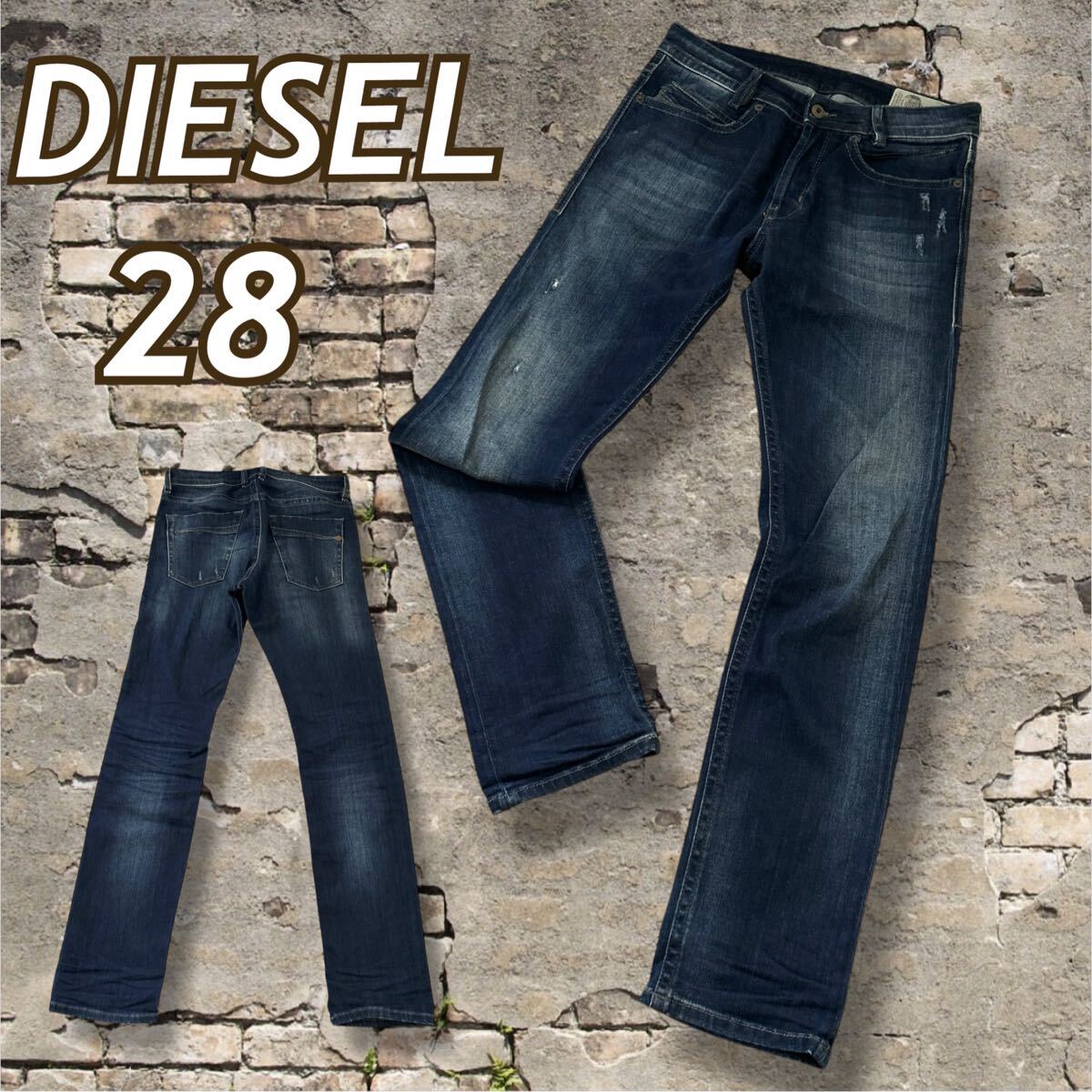 - DIESEL ディーゼル メンズ レディース デニムパンツ 28 トレッチ スキニー ダメージ加工 ボタンフライ RN93243 CA25594 ブルー系 (H013)★