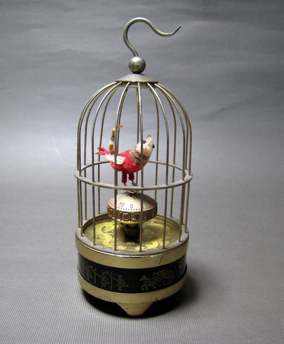 - ちっち時計 小鳥 鳥かご ゼンマイ式 アンティーク インテリア 目覚まし時計 置き時計 吊り時計 回転式 からくり時計 委託