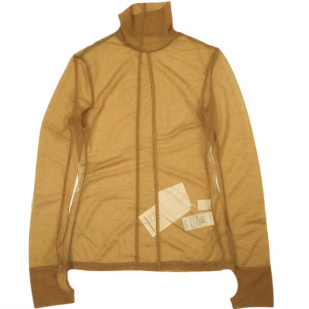 - 新品 Mame Kurogouchi マメクロゴウチ Marble Printed Plaid Sheer High Neck Top シアーカットソー MM23SS-JS020 1 BROWN 定価35,200円