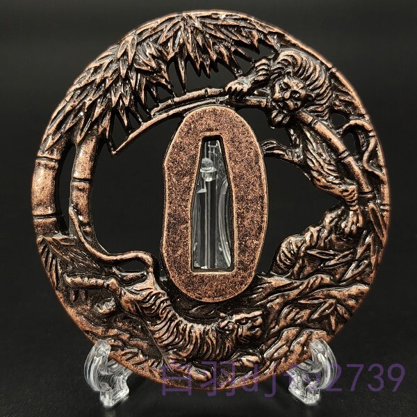 - SY199 日本刀装具 刀鍔 双虎図 合金製 現代品 つば ツバ 刀剣美術 重さ約142G 厚さ約7mm