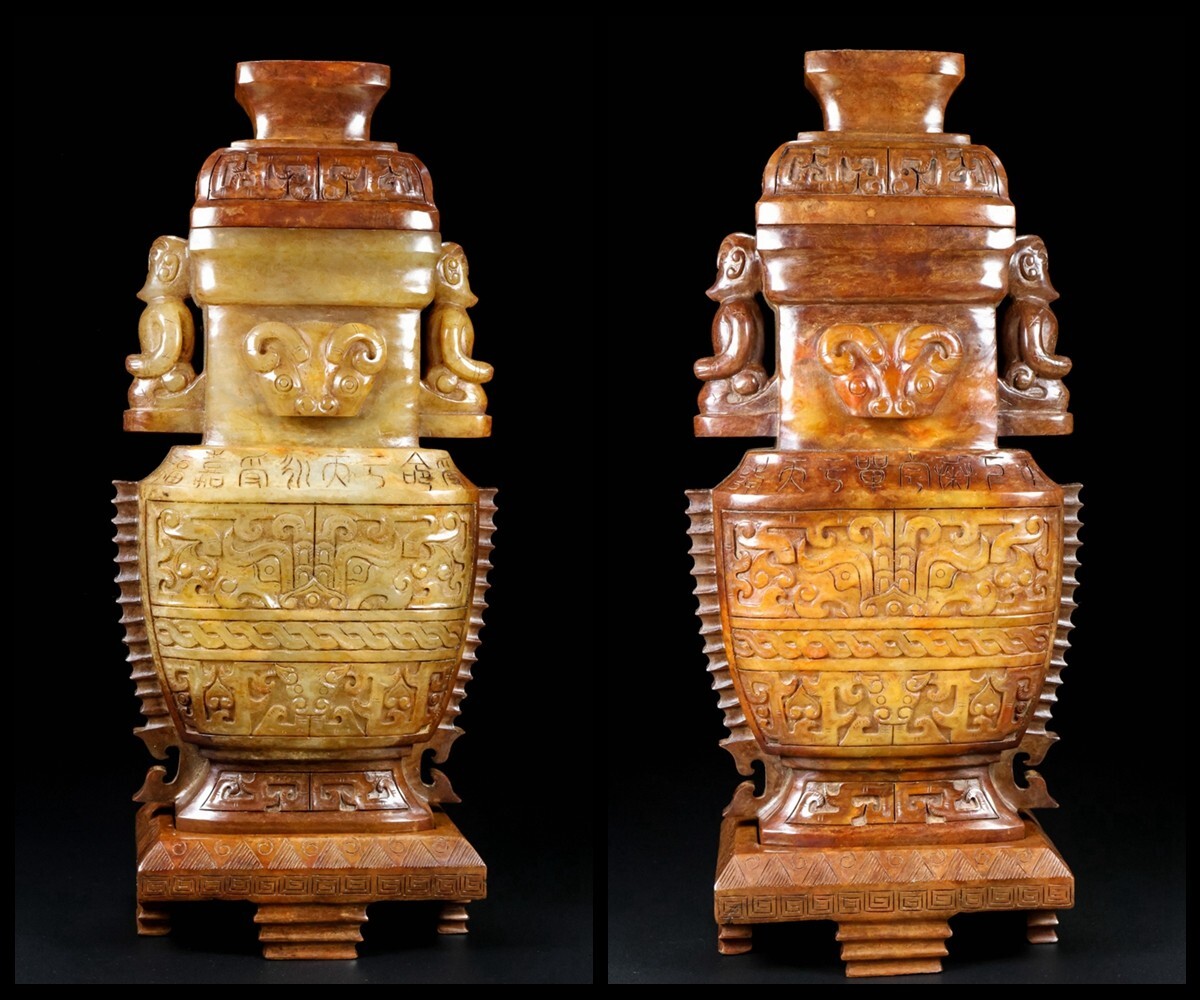 - 「戦國時期 和田玉 高古玉彫り 銘文瓶」極細工 賞物 中国古美術 旧蔵出