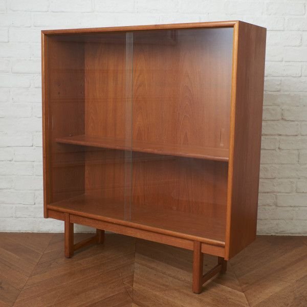 - IZ88002F★イギリス Turnidge ヴィンテージ ナロー キャビネット チーク 本棚 書棚 飾り棚 木製 薄型 ガラス ディスプレイ ブックケース