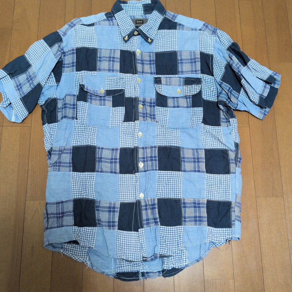 - ixi:z 古着 パッチワークシャツ インド製 アメカジ は 半袖シャツ ボタンダウンシャツ ヴィンテージ ハンドクラフト