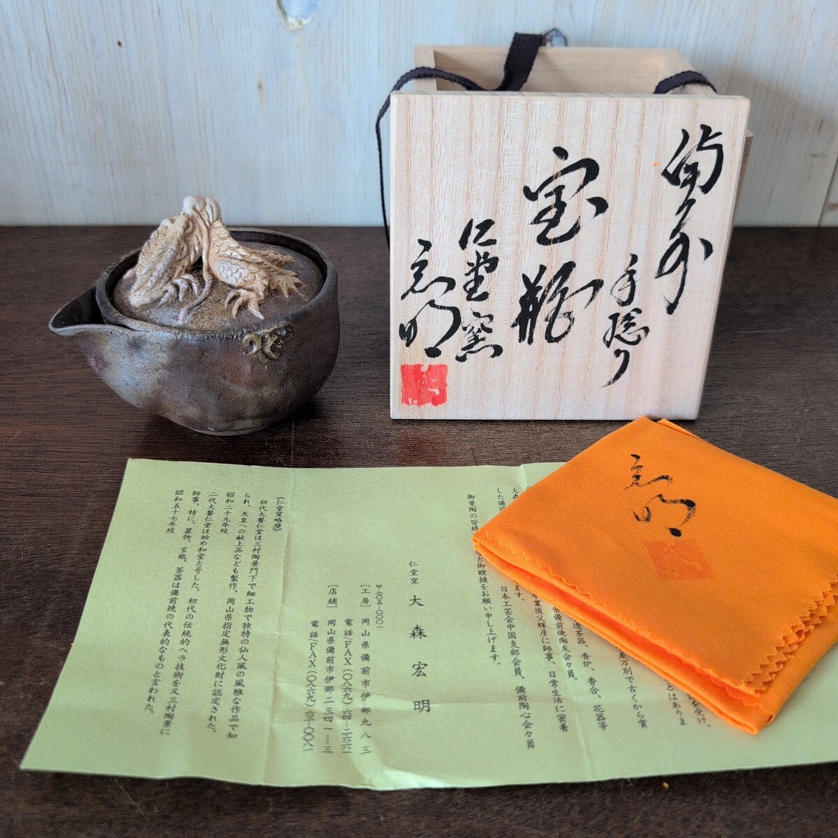 > 備前焼 大饗仁堂窯 大森宏明 白備前 龍 摘み 手捻り 宝瓶 共箱 最新作 茶道具 茶器 手造宝瓶 父 大森輝彦