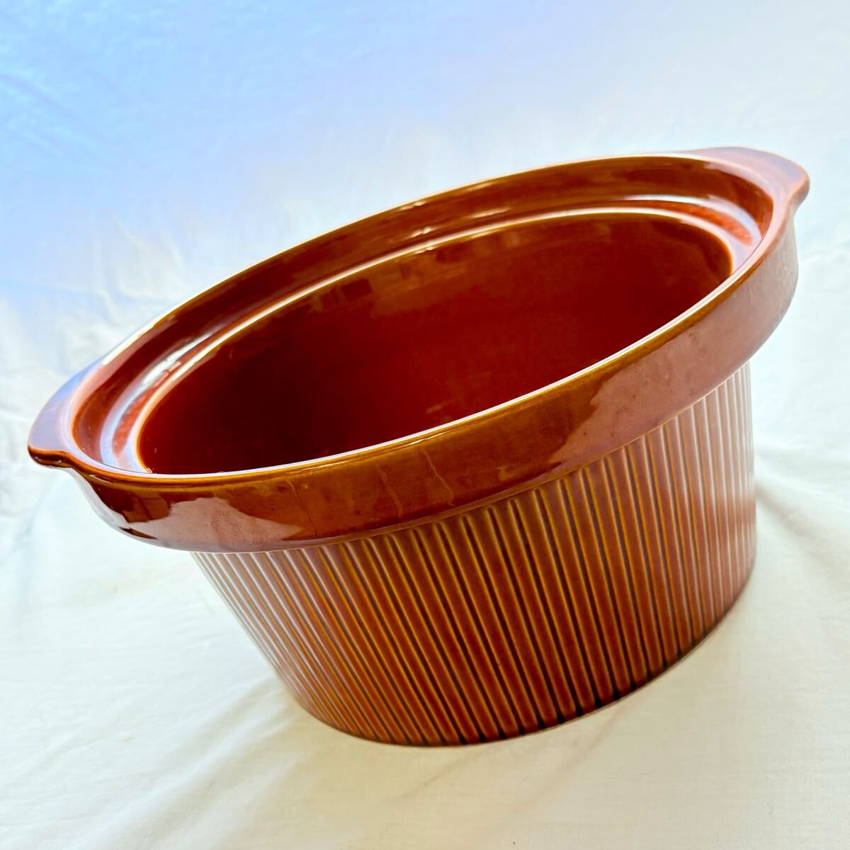 - ココット鍋? スロークッカー? クロックポット? 鍋のみ 大型 深鍋 陶器 ブラウン オシャレ 北欧 シチュー鍋 昭和レトロ 中古品 送料無料