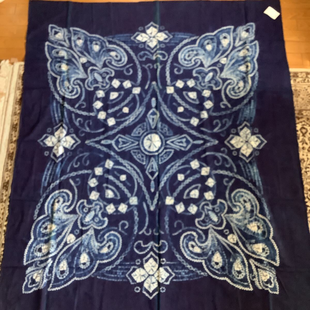 - A6 天然絞り藍染布 大判 146㎝×280㎝ 木綿 手絞り布 タペストリー テーブルクロス マルチカバー