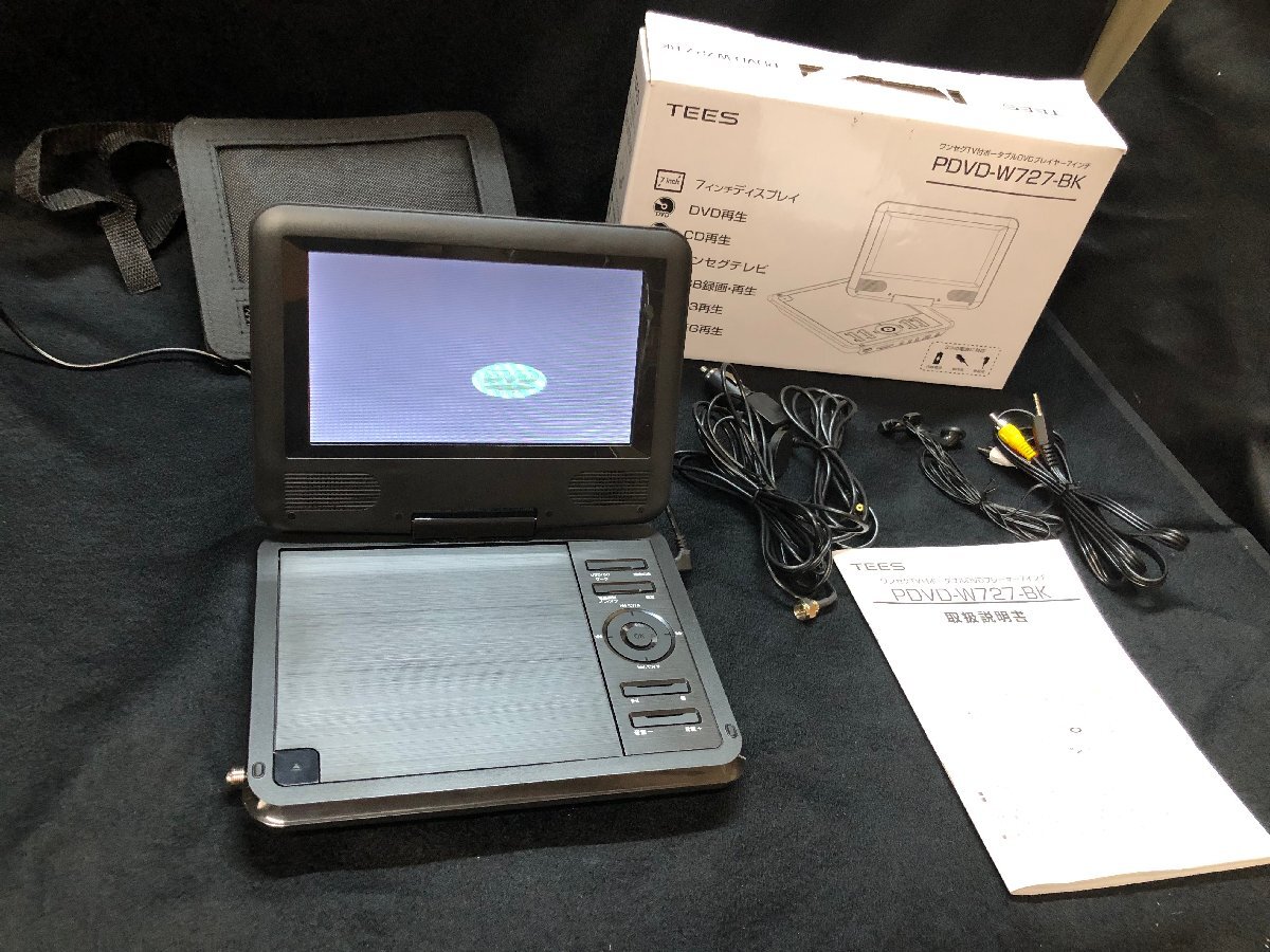 > 25B124 送料無料 TEES ワンセグ テレビ付き ポータブル DVDプレイヤー PDVD-727‐BK 通電動作確認済み 部品取り ジャンク扱い 長期保管品