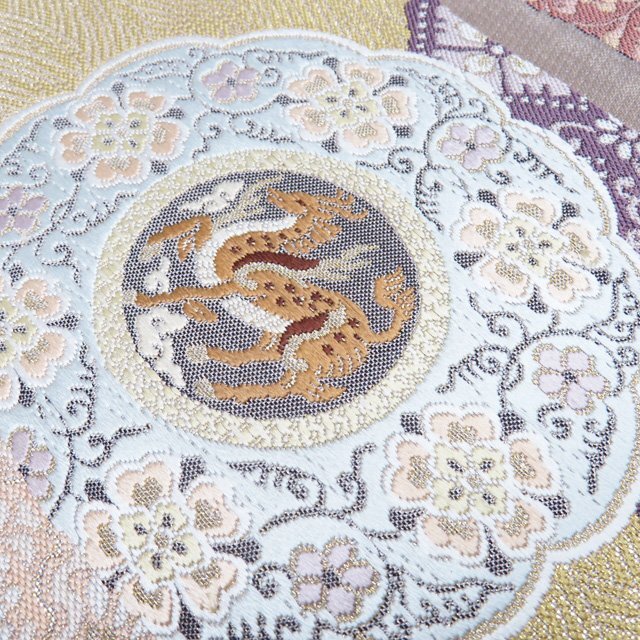 - 袋帯 中古 リサイクル 正絹 フォーマル 仕立て上がり 六通 鏡裏文 花紋 華文 箔糸 きもの北條 A1254-5