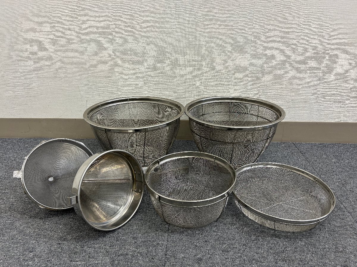 - 【まとめ売り】ザル スープ 漉し器 6点 セット 調理器具 業務用 厨房用品 ざる ステンレス 水切り 浅型 深型 直径35cm~28cm【中古品】