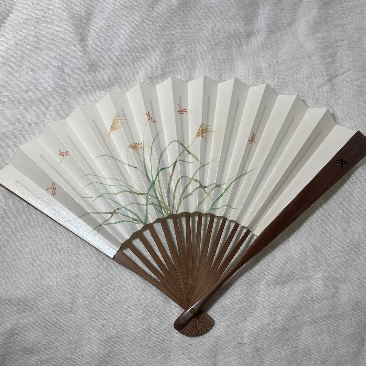 - ◯竹 扇子 ススキ 稲 金色 トンボ柄 ◯季節感 秋 骨 トンボ 彫刻 Xー116 ◯勝利 出世 前進 縁起物