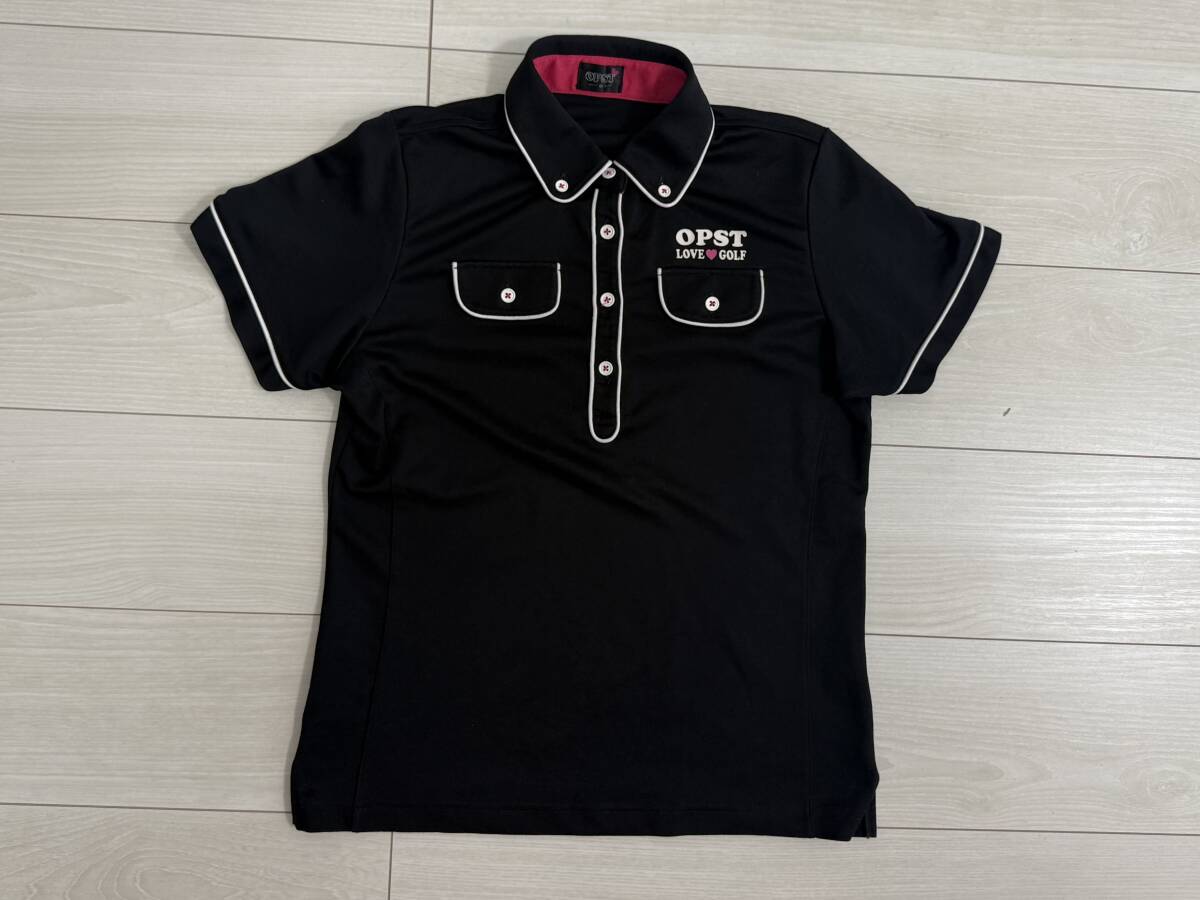 - ★OPST レディース ゴルフ 半袖ポロシャツ LOVE GOLF 黒 O★