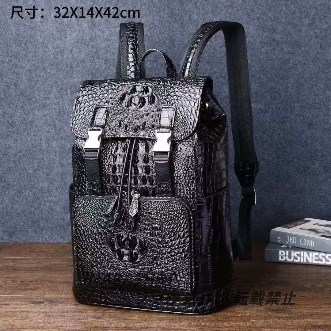 - クロコダイルレザー 本革バックパック ナチュラルファッション ワニ皮 リュックサック デイパック