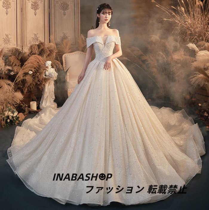 - カラードレス ウエディングドレス ウェディング ドレス オフショルダー Aライン 前撮り 後撮り 披露宴 結婚式 演奏会 海外挙式ドレス