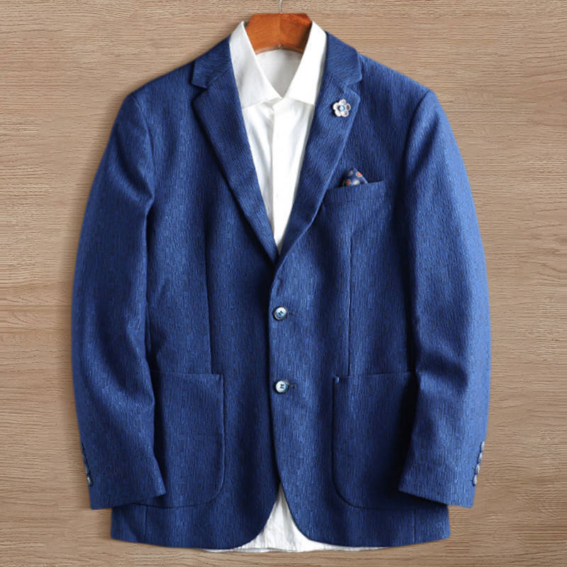 > W0464-M紺色 新品 テンセル混 防シワ ラードジャケット メンズ 軽量 通気 立体裁断 薄めの肩パッド 薄手 細身 春夏 ビジネス ブレザー