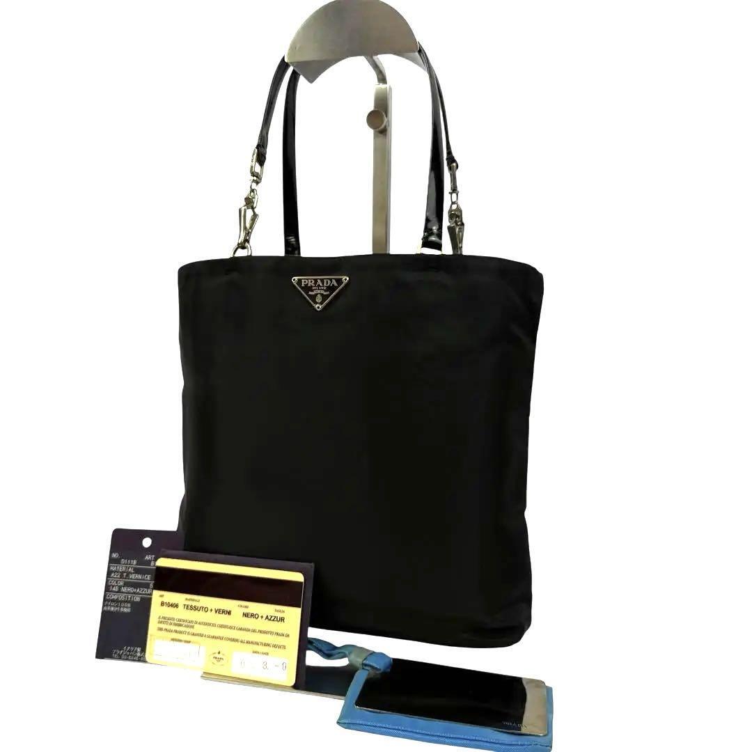 - 【Gカード&鏡付き×外観美品】PRADA プラダ ミニ ハンドバッグ 小さい 手提げカバン 三角ロゴ レザーハンドル ナイロン 黒 ブラック B10406