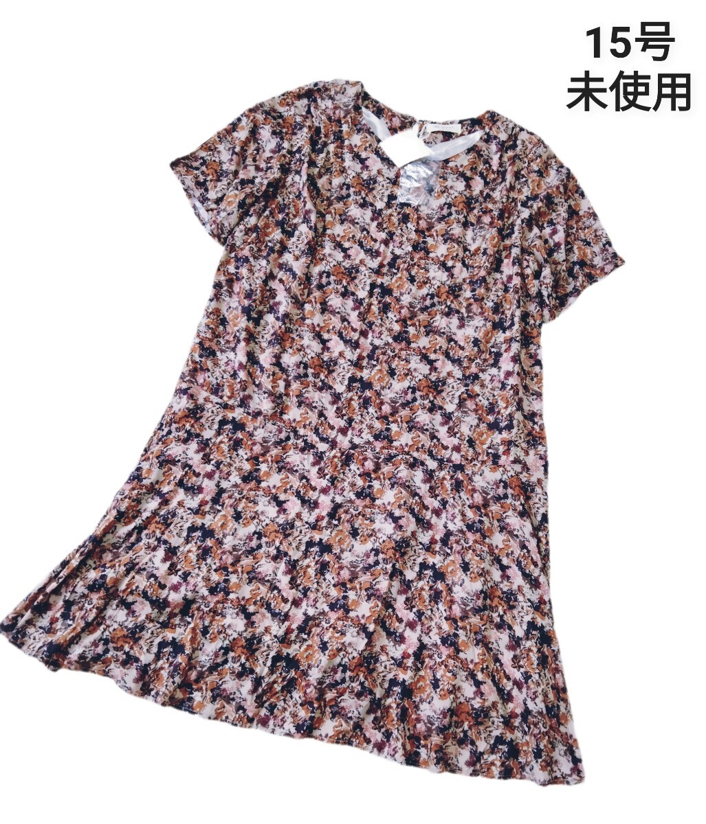 - 未使用*sab street my standard*サブストリート マイスタンダード*大きいサイズ15号*ボタニカル柄*半袖チュニック*ワンピース*花柄*茶系