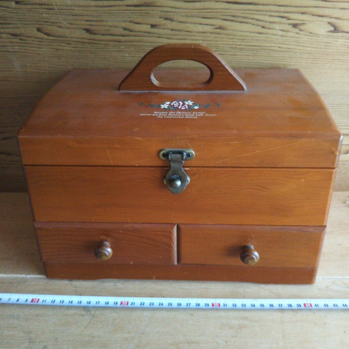 - 25081601 昭和レトロ ソーイングボックス (中身まま) 木製 裁縫箱 道具箱 木箱