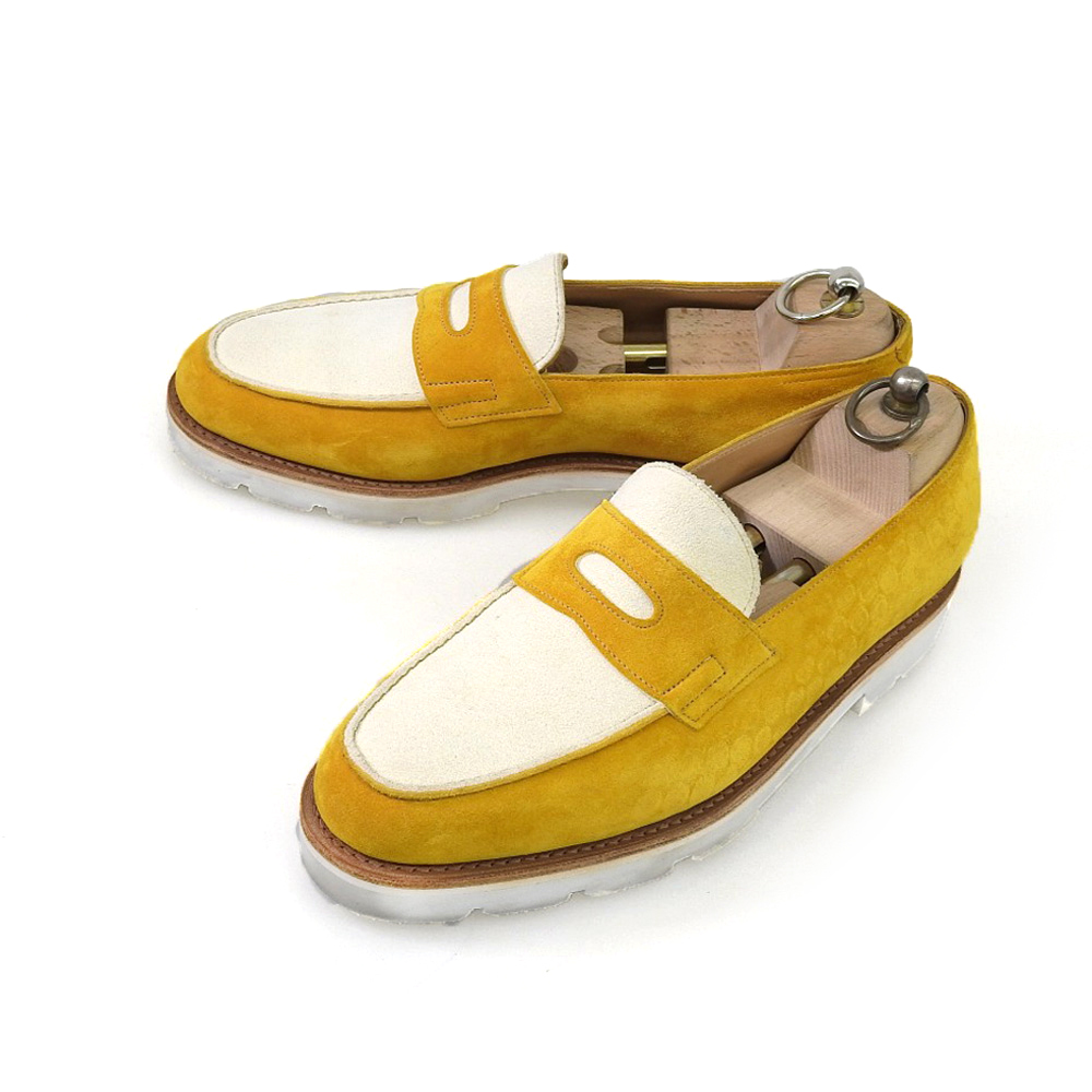> 【10189MD】使用僅かの超美品 ジョンロブ LOPEZ(ロペス)コインローファー スエード イエロー×ホワイト コンビ サイズ7.5E JOHN LOBB