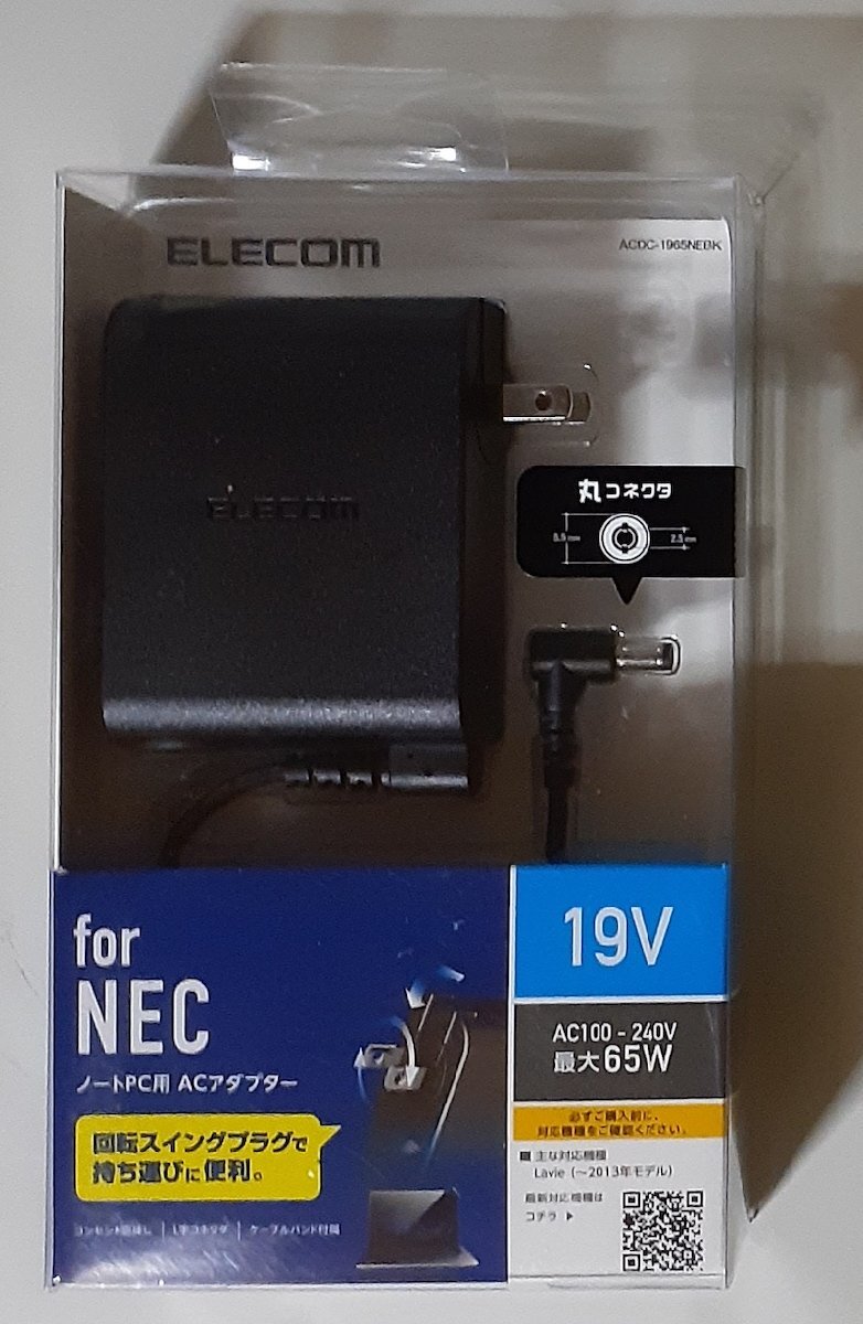 - 6497 ELECOM ACアダプタ ACDC-1965NEBK 19V 65W NECノートPC用 丸型コネクタ 回転スイングプラグで持ち運びに便利