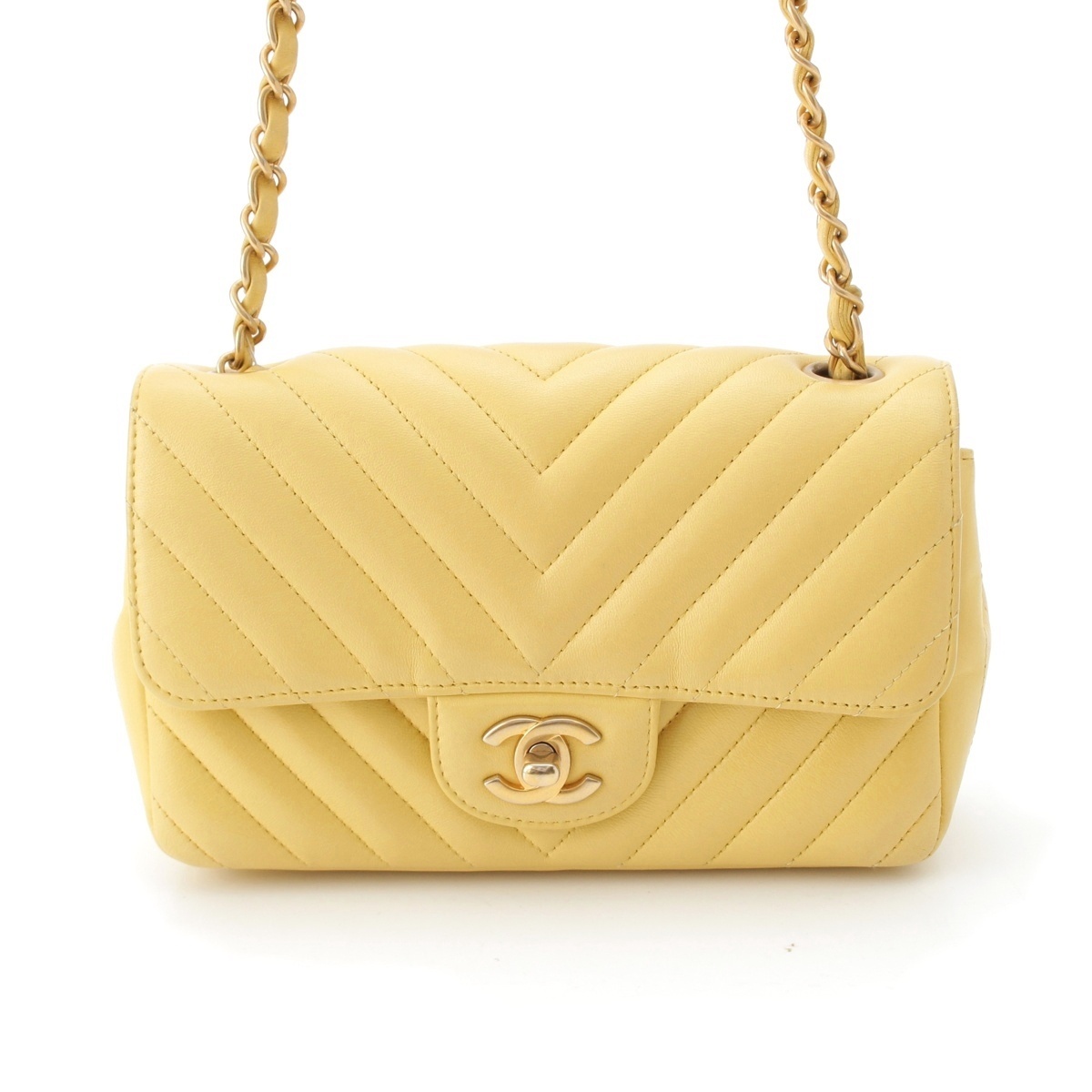 - シャネル Vステッチ シェブロン ラムスキン チェーン ショルダーバッグ イエロー【中古】