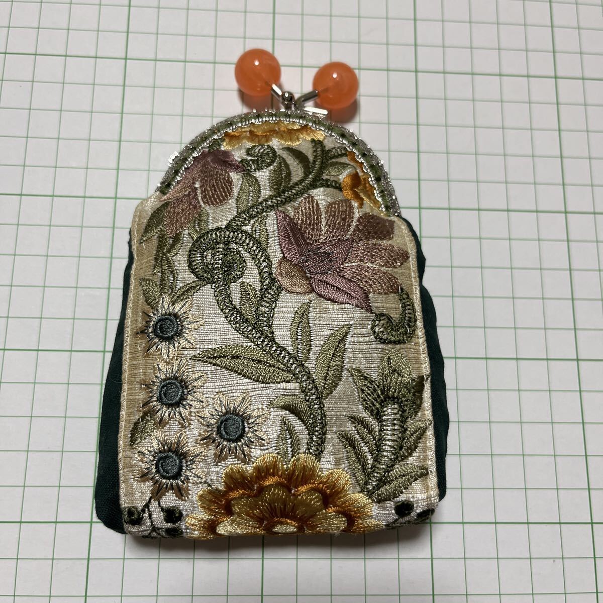 - オレンジ口金がカワイイ*インド刺繍リボンを使ったがま口*