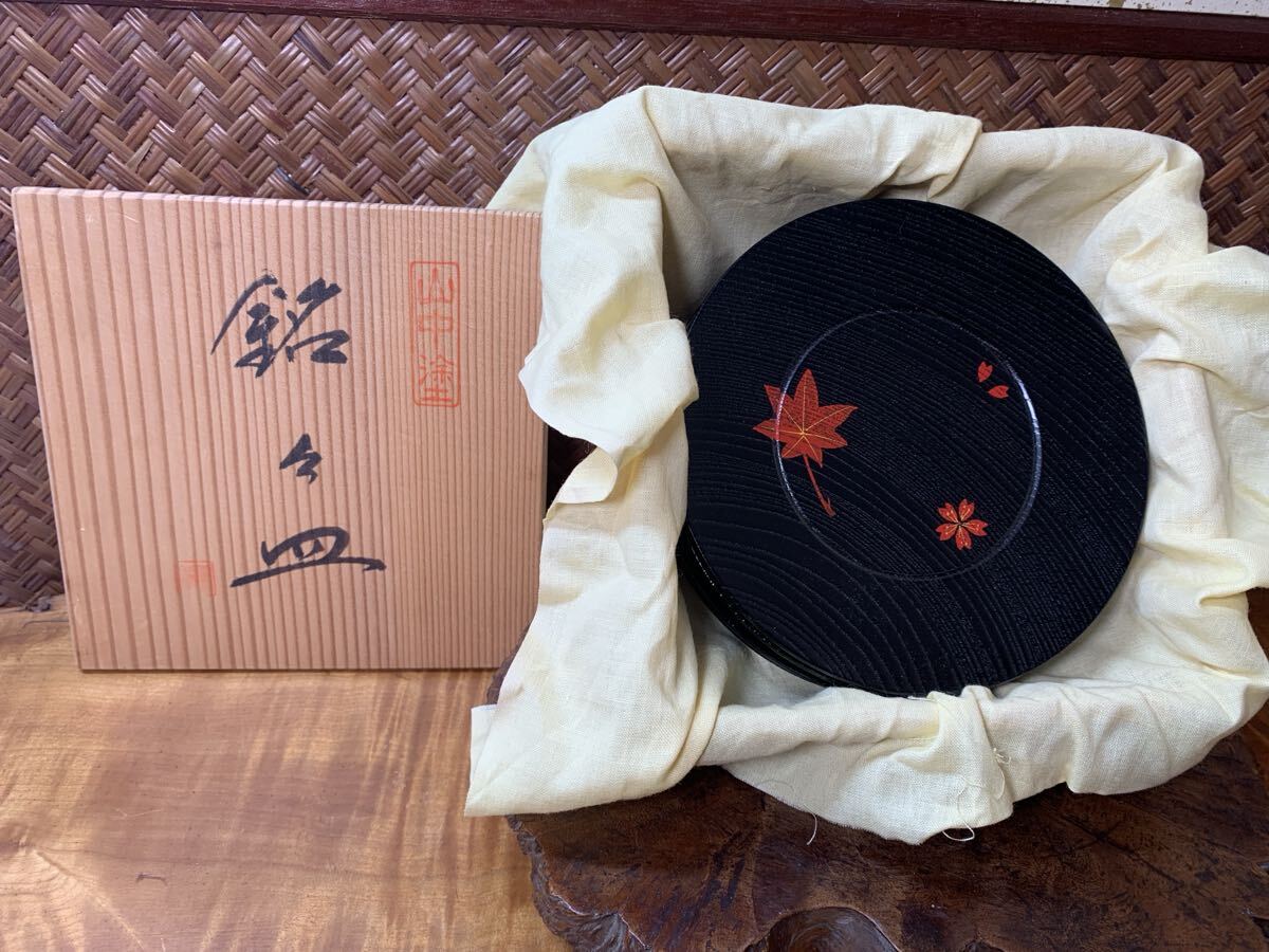 - 【山中塗 銘々皿 5客揃】紅葉図 木箱付 茶道具 工芸品 和食器 アンティーク 古道具 同梱相談可 懐石道具 煎茶道具 時代物 華道具 茶懐石