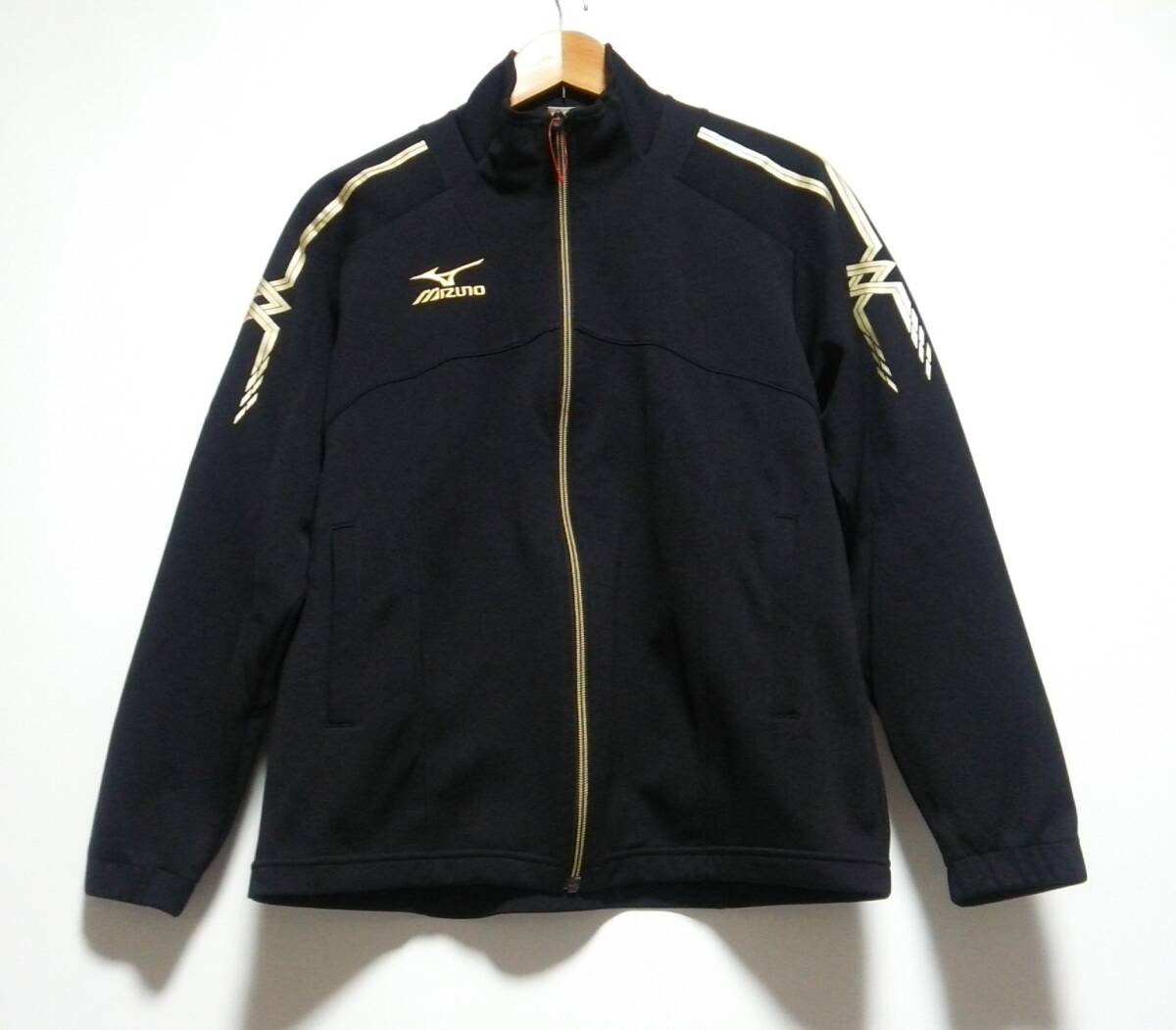 > 美品 MIZUNO ミズノ ★刺繍ロゴ★ ジャージジャケット トラックジャケット ウォームアップシャツ ブルゾン 黒×金 メンズSサイズ
