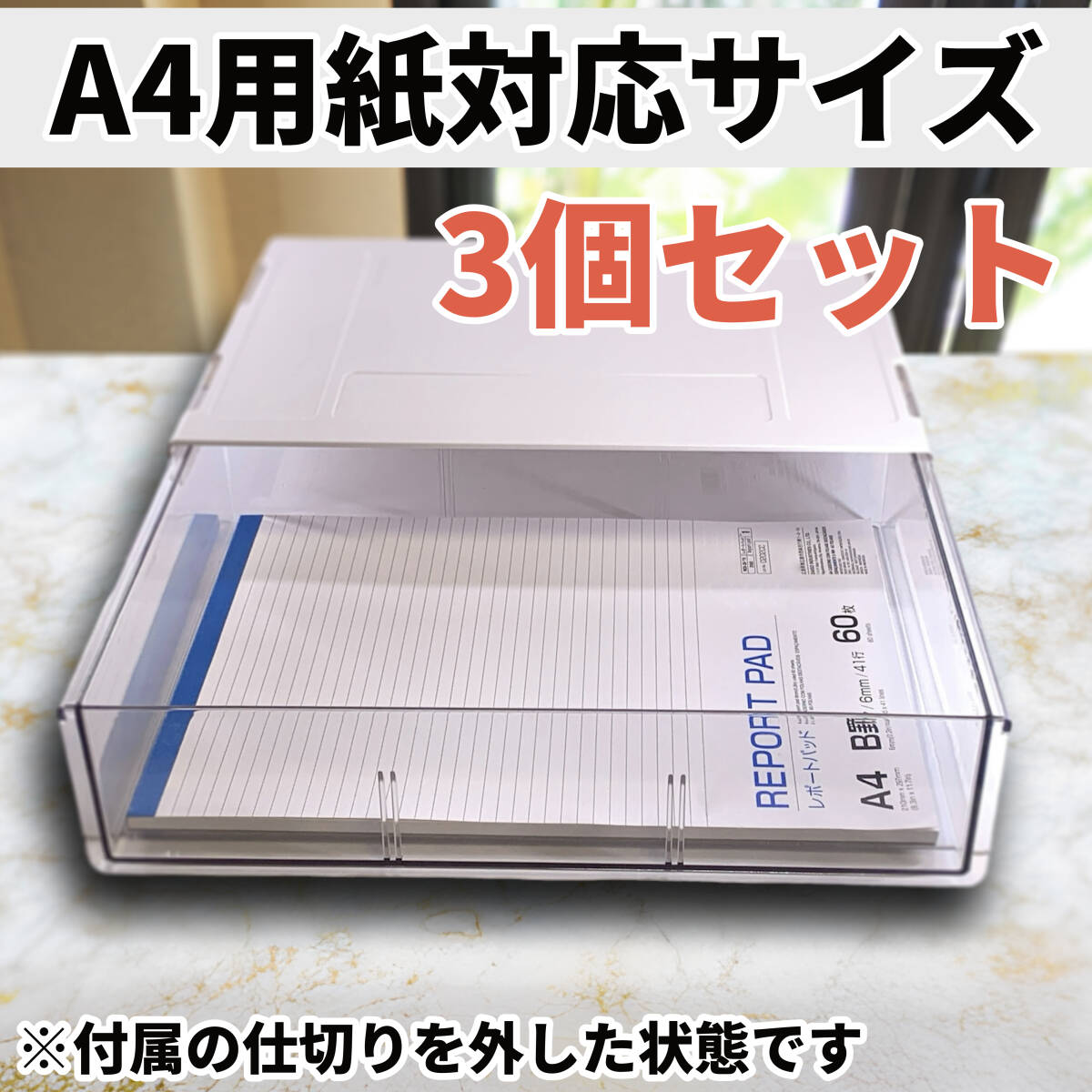 - 後付け引き出し 3個セット A4サイズ対応 仕切り付きタイプ 透明 デスク下収納