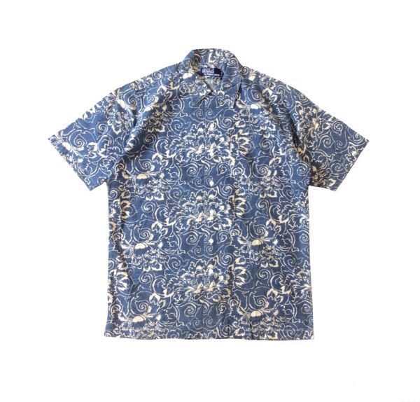 > POLO RALPH LAUREN ラルフローレン 90s 花柄 オープンカラー 半袖 シャツ ネイビー系 コットン メンズ M ヴィンテージ