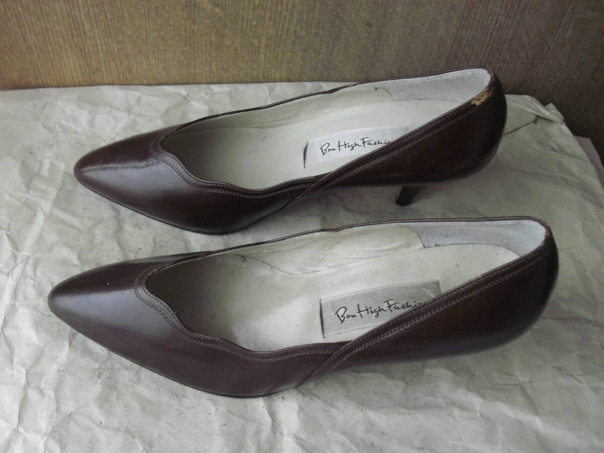 - USED 汚れ・使用感有り 日本製茶色パンプス ヒールにダメージ有り