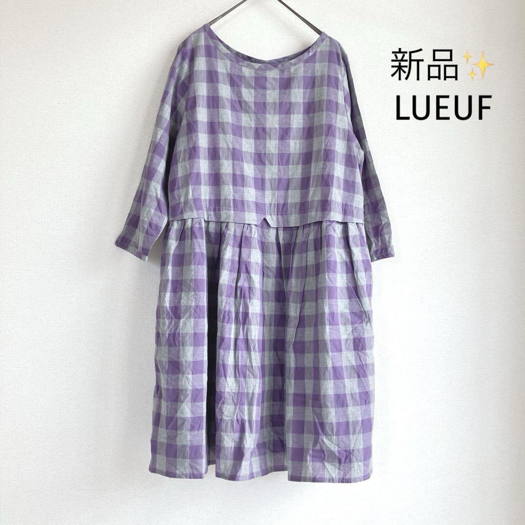 - 新品ルフ LUEUF ワンピース ギンガムチェック パープル×グレー 七分袖