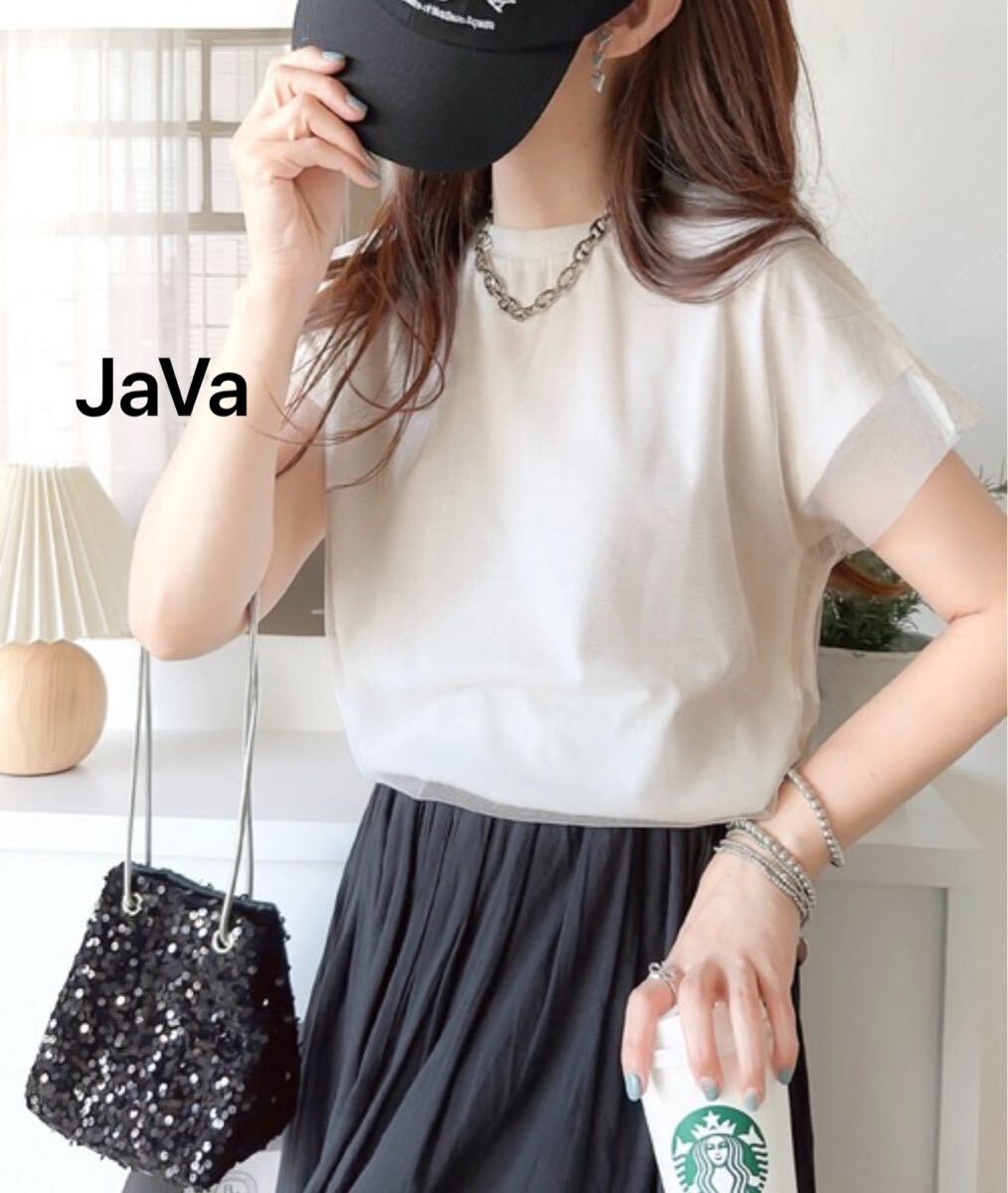 - tシャツ 「JaVa ジャバコラボ」1枚で即こなれ感。バックプリントチュールレイヤードフレンチTシャツ レディース