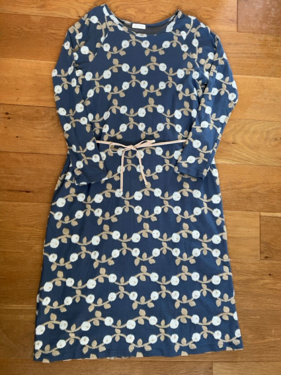 > レア 美品 サリースコット Sally Scott ★ 花柄 ブークレー刺繍 ボタニカル ジャガード 長袖 ワンピース M ブルーグレー 着1 ベロアリボン