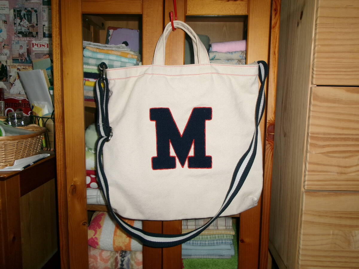 - niko and...ニコアンド☆生成りキャンバス素材のトートバッグ☆ショルダー紐付き2WAYBAG♪ショルダーバッグにも☆もこもこ♪ロゴアップリケ