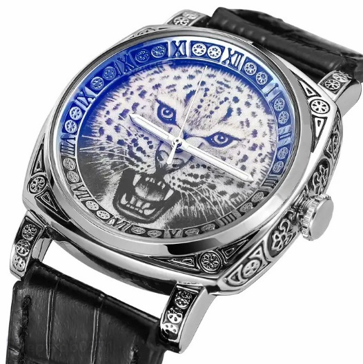 > 高級男性腕時計 新入荷 アナログ 機械式自動巻 3針 豹 メンズウォッチ 防水3ATM 本革ベルト 紳士 アメカジ/黒