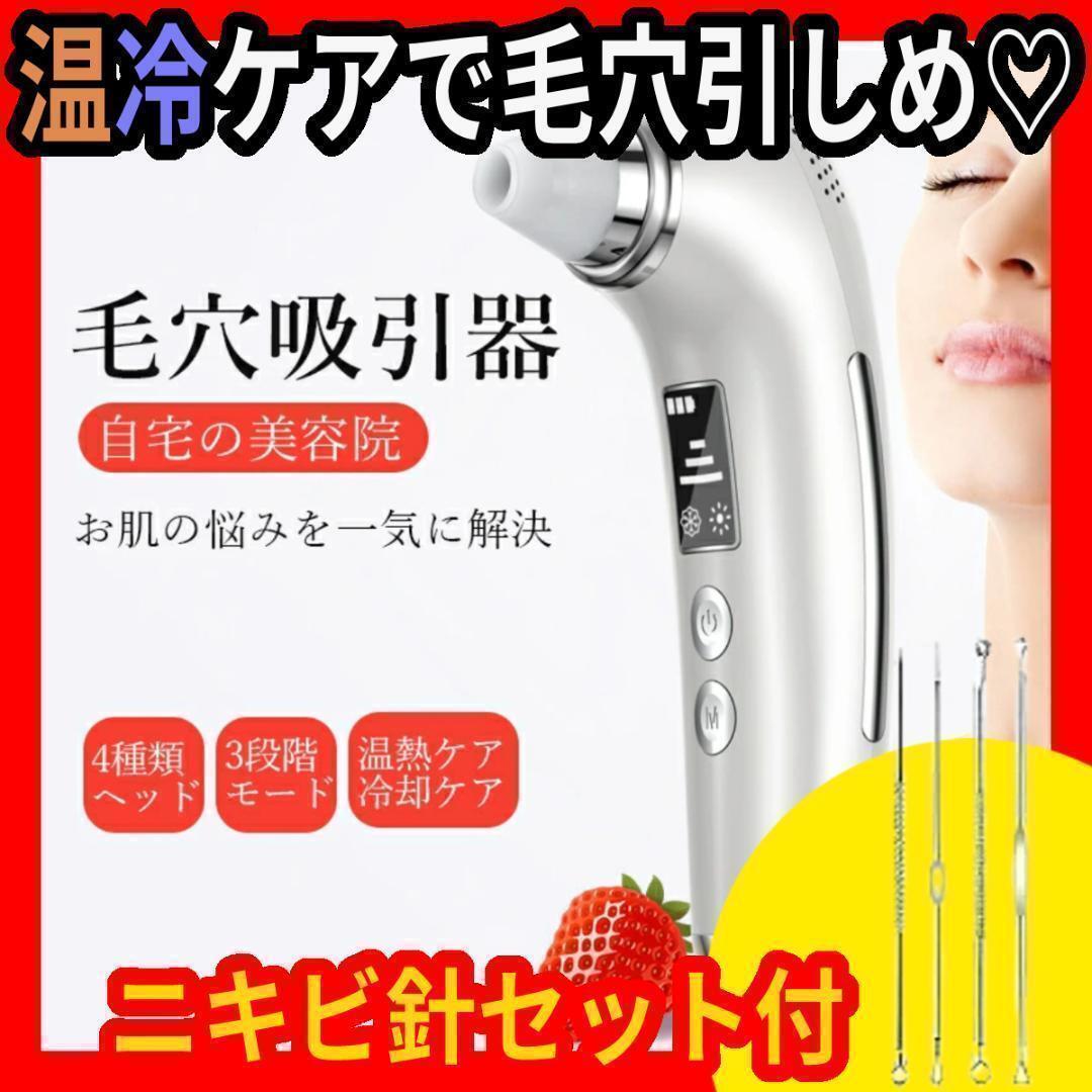 - 毛穴吸引器 美顔器 毛穴クリーナー 温冷ケア 3段階吸引力 毛穴 美容 真空吸引 毛穴の汚れ イチゴ鼻 にきび 角質 角栓 4種類吸引ヘッド
