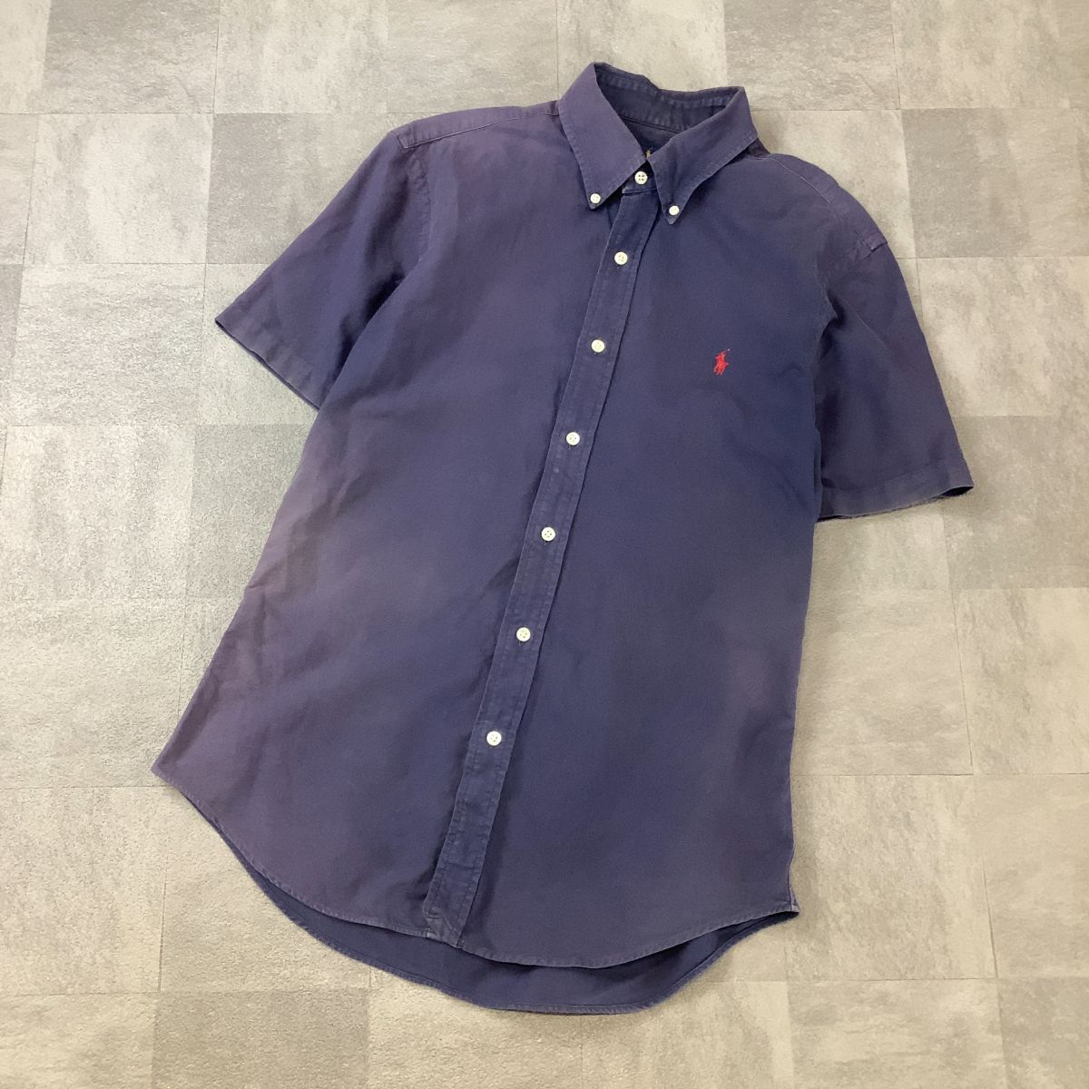 - Ralph Lauren ラルフローレン 半袖 ボタンダウンシャツ メンズ M ネイビー サンフェード