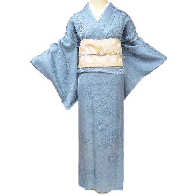 > 付下げ 付け下げ 訪問着 着物 中古 単衣 地模様 花模様 小葵文 箔糸 浅縹色 銀 身丈166.5cm 裄68cm L トール きもの北條 A1257-7