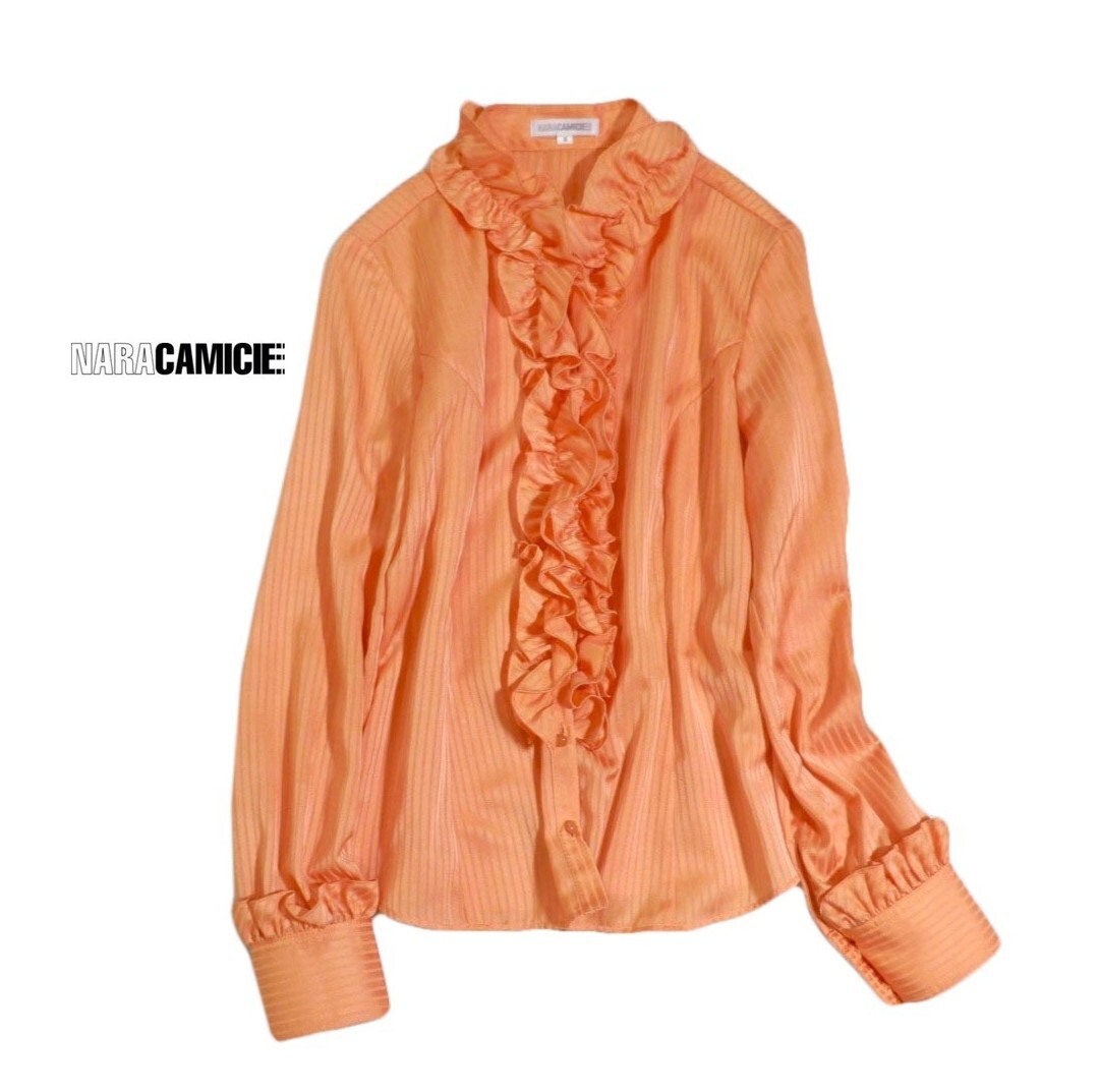 - ナラカミーチェ NARACAMICIE キレイ色 ストライプ フリル ブラウス シャツ Ⅱ