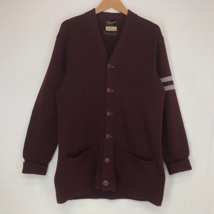 > VINTAGE LETTERED CARDIGAN ヴィンテージ レタードカーディガン SIZE: M程度 ボルドー ヴィンテージ MH632025081510