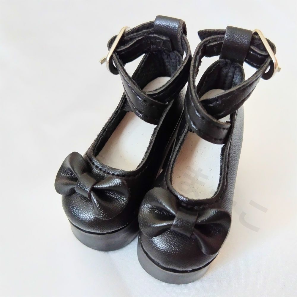 - 1/4ドールシューズ 厚底靴 40㎝ 人形 BJD MDD MSD 黒色 ブラック リボン スーパードルフィー ロリータ クラシカル レトロ