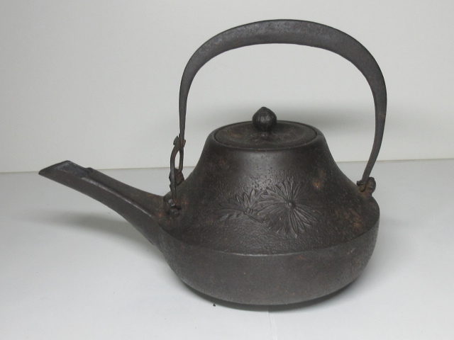 - ★菊花文・鉄瓶急須★お銚子・酒注ぎ・茶道具・酒器★骨董・レア・ビンテージ・レトロ・アンティーク・コレクション・美品★