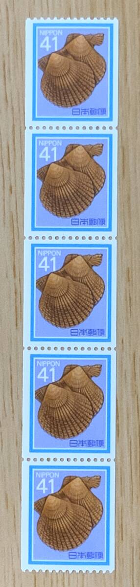 - ヒオウギガイ 41円 コイル切手 未使用 ストリップ5枚 K160