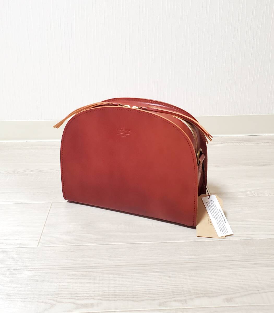 - 新品 未使用 美品 TIDEWAY タイドウェイ ショルダーバッグ レディース 斜めがけ 姫路レザー 半月型 牛革 本革 日本製 マルーン ブラウン