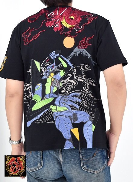 - EVANGELION×錦 初号機VS赤龍半袖Tシャツ◆錦 ブラック XXLサイズ 554369 和柄 和風 エヴァンゲリオン 刺繍 竜