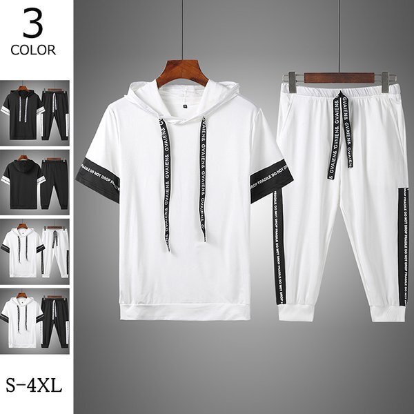 > ジャージメンズ セットアップ半袖スエット2点セットサマートレーナー夏 上下セットハーフパンツルームウェア夏服M-4XL