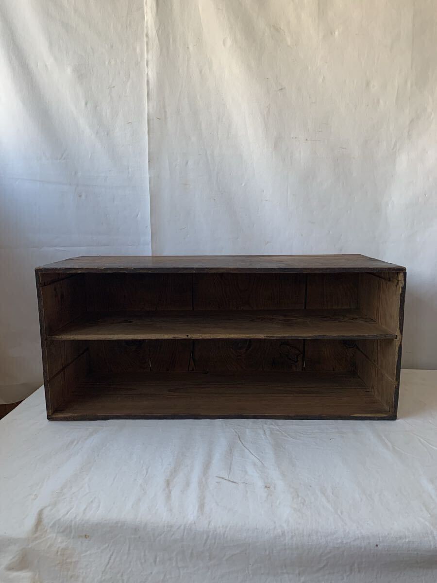 - 経年の雰囲気が素敵な木製二段棚 展示台食器棚陳列棚飾り棚無垢材店舗什器収納インテリアディスプレイ古道具アンティークビンテージ古家具
