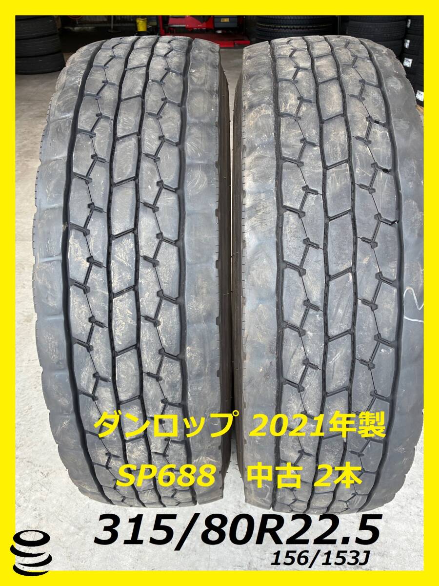 > 【M】 中古 315/80R22.5 SP688 ダンロップ ミックス 2本セット 2021年製